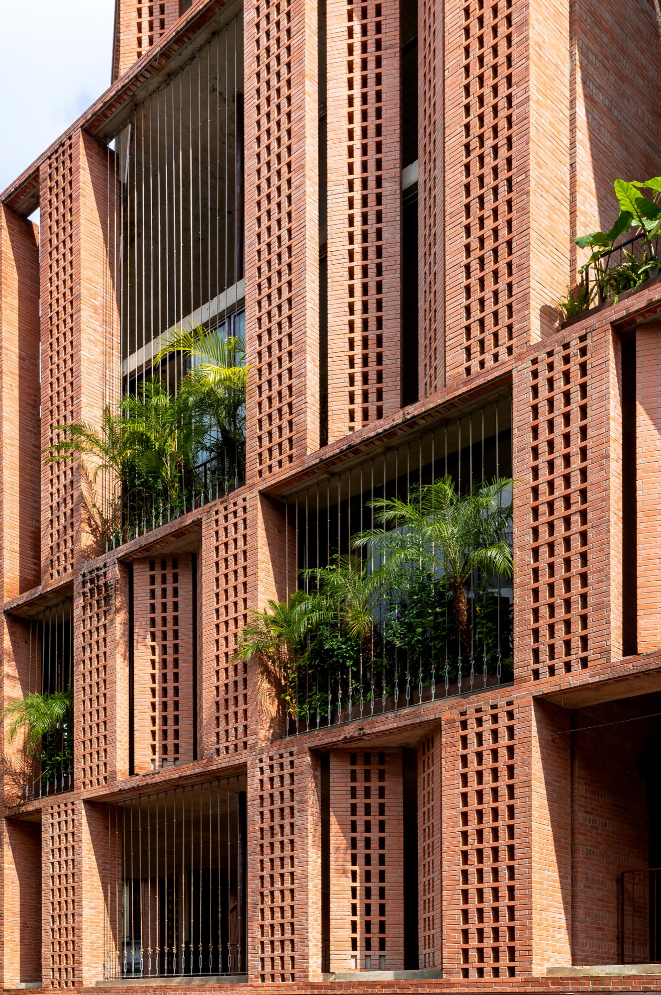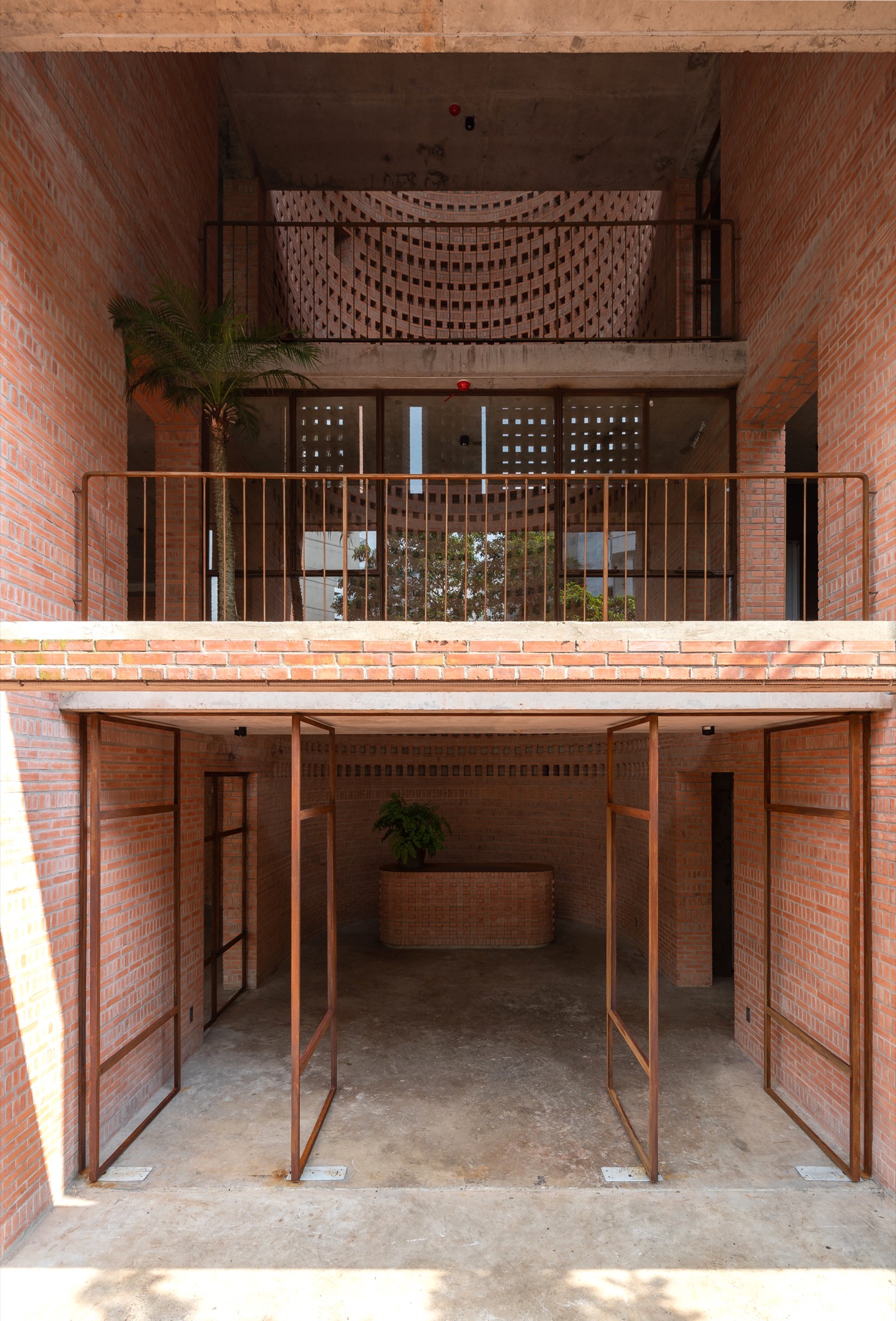Chia sẻ kĩ hơn về vật liệu này, kiến trúc sư Long nghĩ rằng việc người cổ đại tìm ra lửa đã là một bước tiến lớn của nhân loại, sau này con người biết sử dụng lửa để nung đất thành một vật thể có hình dạng tiếp tục cho thấy bước nhảy văn minh trong đời sống vật chất của loài người. Cục đất nung có vẻ đẹp riêng dù chúng ở bất cứ hình dạng và góc độ nào. Tropical Space chỉ thiết kế và module hoá những cục đất nung dạng hình hộp chữ nhật như vậy để tạo thành một công trình kiến trúc. Việc này có tính kế thừa, không hề mới mẻ, nhân loại trước đó đã làm vô số những công trình bằng gạch rất to và đẹp. Theo kiến trúc sư Long, kiến trúc như một lớp áo kết nối con người với môi trường vì thế phải hiểu rất sâu sắc không gian bên trong, môi trường bên ngoài và vai trò của kiến trúc trong việc tương tác, cảm thông giữa hai chủ thể tự nhiên, đó là con người và bối cảnh.