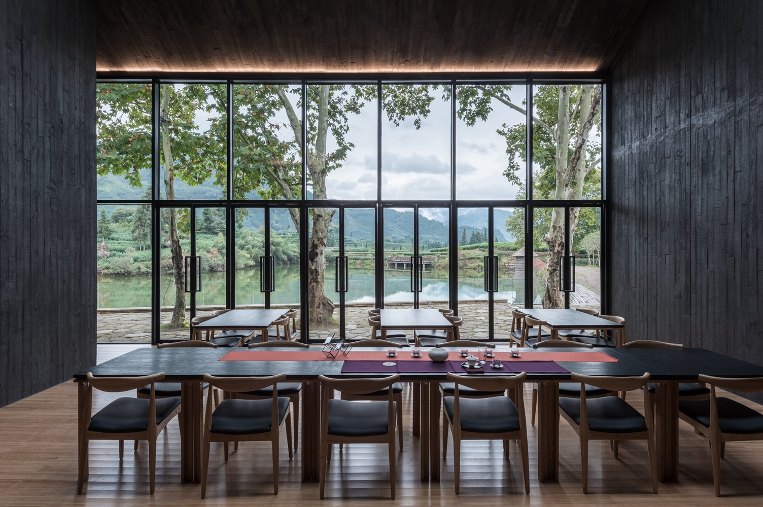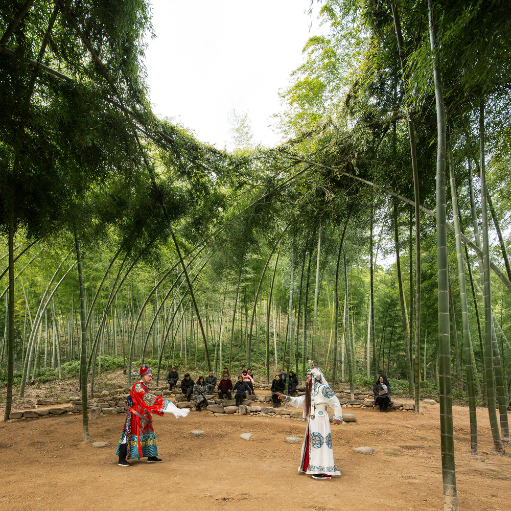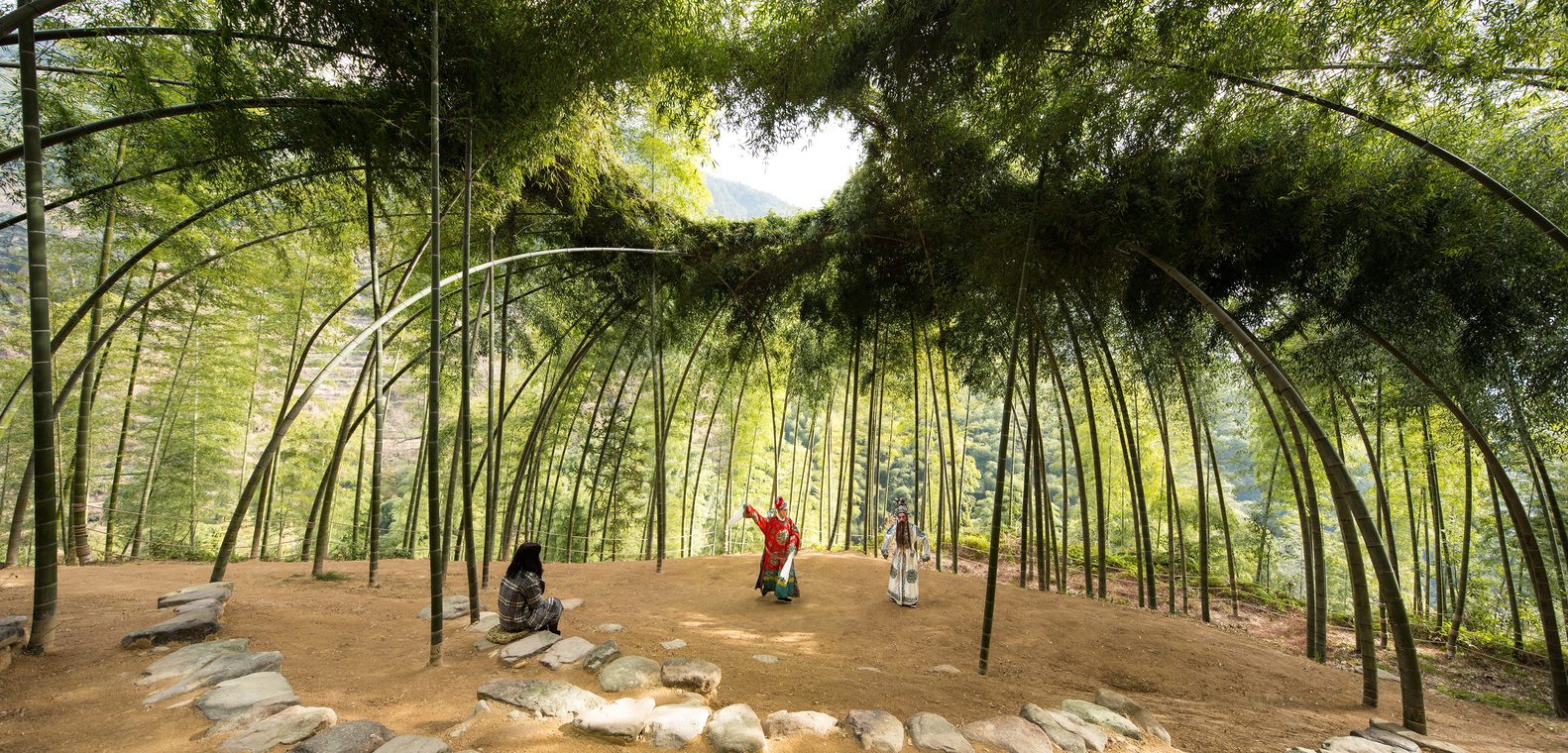 Trong Bamboo Theatre và Damushan Teahouse, mối quan hệ giữa kiến trúc và cảnh quan được đặt ở vị trí trung tâm. Vật liệu tre, các lớp mái và những khoảng mở lớn không chỉ phản ánh điều kiện địa hình mà còn tổ chức lại cách con người tiếp cận không gian xung quanh. Kiến trúc không tách khỏi môi trường mà trở thành một phần của hệ thống cảnh quan, nơi việc nhìn, di chuyển và dừng lại được liên kết trong một trải nghiệm liên tục.
